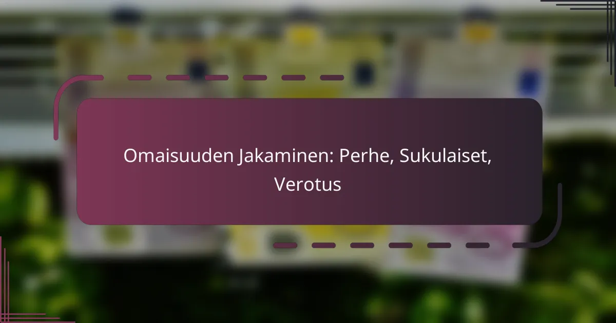 Omaisuuden jakamiseen liittyvät verotukselliset näkökohdat ovat keskeisiä, kun perhe tai sukulaiset jakavat omaisuutta. Suomessa perintövero ja lahjavero vaikuttavat merkittävästi omaisuuden siirtoihin, ja on tärkeää ymmärtää, miten nämä verot toimivat ja mitä poikkeuksia on olemassa.