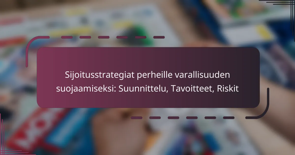 Sijoitusstrategiat perheille varallisuuden suojaamiseksi ovat keskeisiä suunnitelmia, jotka auttavat hallitsemaan ja kasvattamaan taloudellista hyvinvointia. Tavoitteena on varmistaa perheen taloudellinen turvallisuus ottaen huomioon sekä perhesuhteet että markkinoiden riskit. Tehokas strategia perustuu selkeisiin tavoitteisiin ja huolelliseen budjetointiin, mikä mahdollistaa varallisuuden kestävän kasvattamisen.